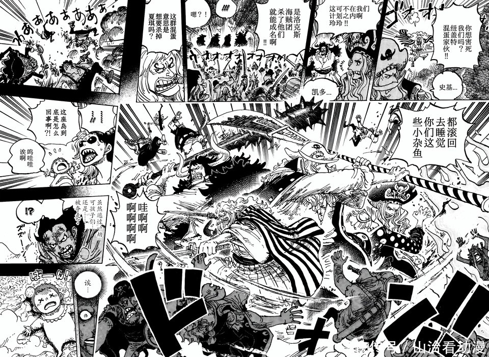 神之谷大战正在爆发当中,洛克斯海贼团攻打神之谷,罗杰海贼团也杀入神之谷,他们要救出夏琪。天龙人正在撤离,他们连财宝都无法带走,海军只能把天龙人带走,不然天龙人就会被干掉,洛克斯海贼团已经杀入到神之谷的中央位置。